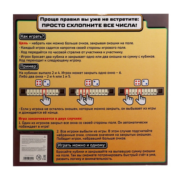 Настольная игра «Хлопни числа» — это увлекательное занятие для детей от 7 лет и взрослых. Подходит для небольших компаний до 4 человек или для самостоятельной игры. Логический жанр делает её отличным выбором для тренировки ума, развития внимания и реакции.