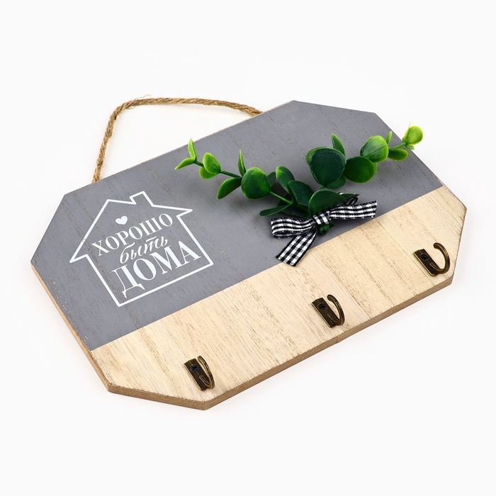 Ключница настенная «Хорошо быть дома», цвет серый, 20 х 14 см