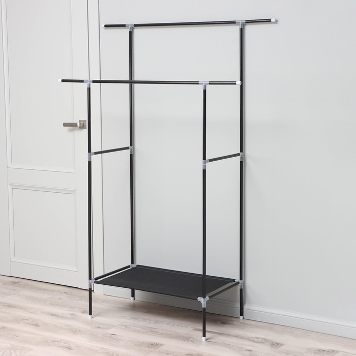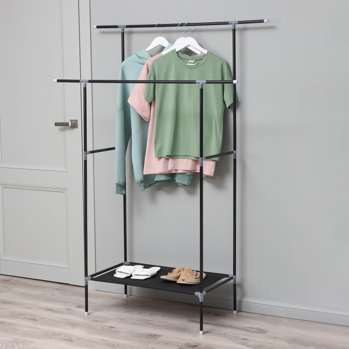 Стойка - вешалка напольная для одежды Доляна, телескопическая, 2 перекладины, подставка для обуви, 80×43×90(160) см