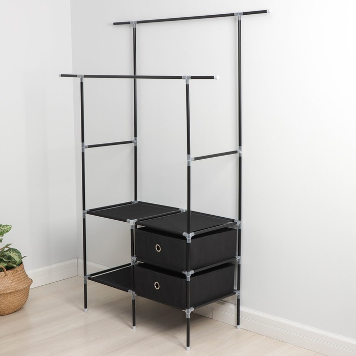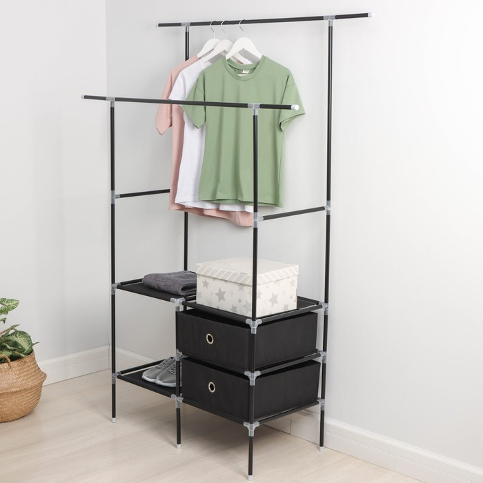 Вешалка - стойка напольная для одежды Доляна, 2 перекладины, 2 ящика, 120×43×169 см, цвет чёрный