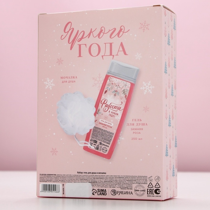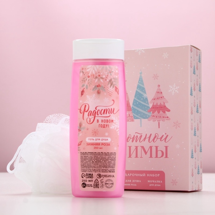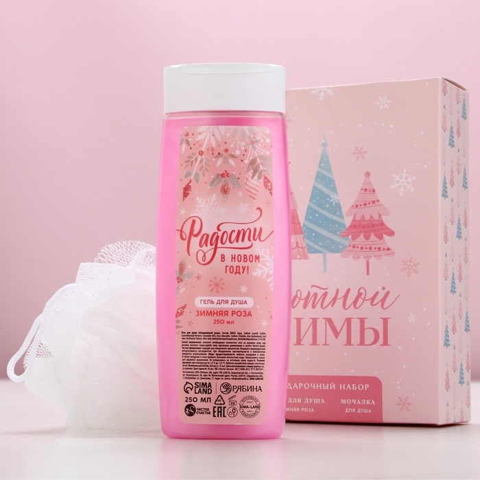 Подарочный набор ЧИСТОЕ СЧАСТЬЕ «Уютной зимы»: гель для душа 250 мл и мочалка для тела, Новый Год