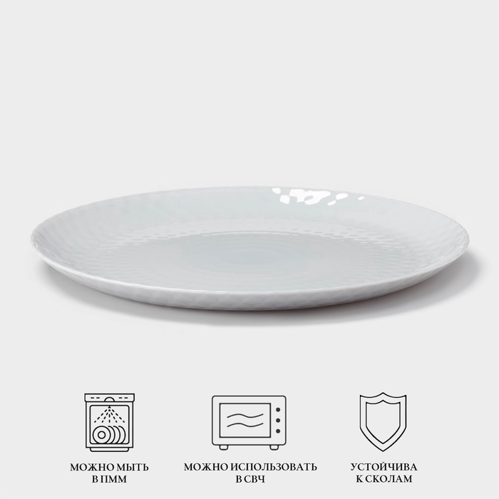 - Использование в СВЧ-печи: тарелка безопасна для использования в микроволновой печи, что облегчает разогрев и подачу блюд прямо со стола.