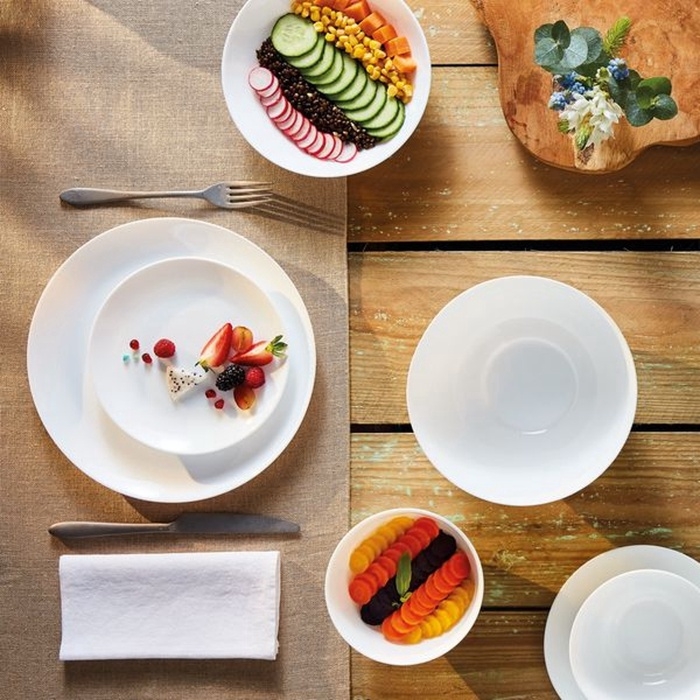 - Лаконичный дизайн: однотонный белый цвет придаёт и плавные линии придают сервизу лаконичность, позволяя сделать акцент на еде и общении.