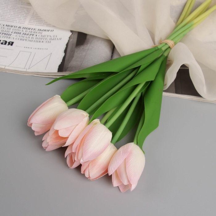 Цветы искусственные «Тюльпан люкс» (7 штук в связке) 32 см, светло-розовый