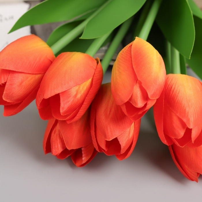 Цветы искусственные «Тюльпан люкс» (7 штук в связке) 32 см, оранжевый