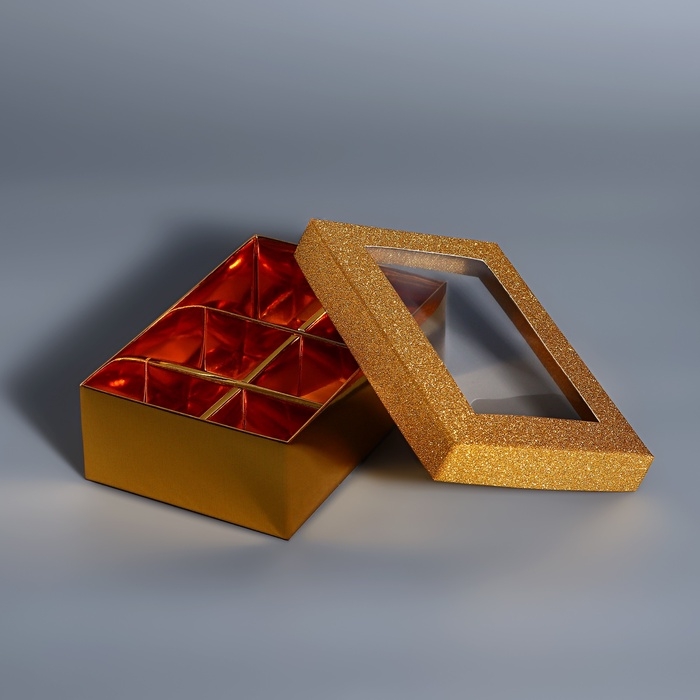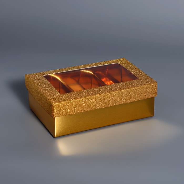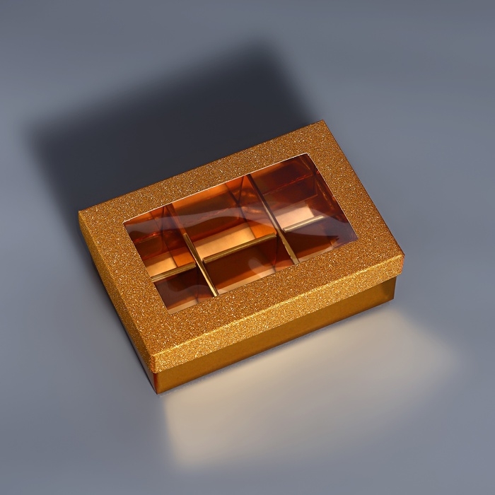 Коробка для 6 конфет золото глиттер, 12 х 8,5 х 4 см. Кондитерская упаковка