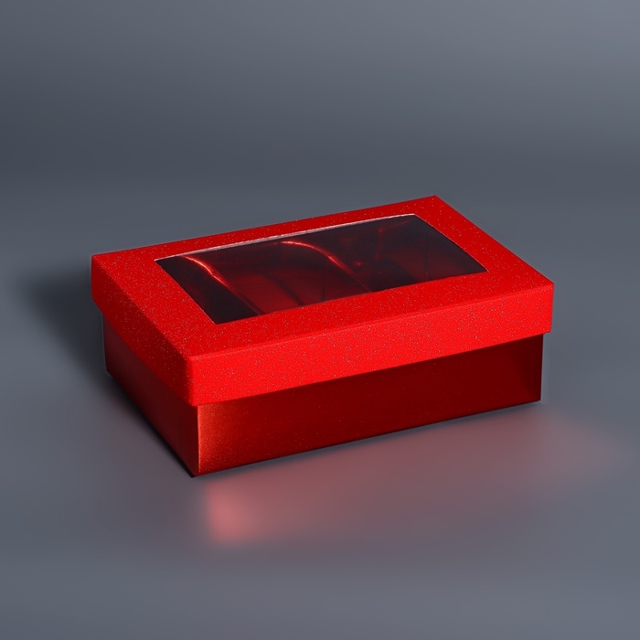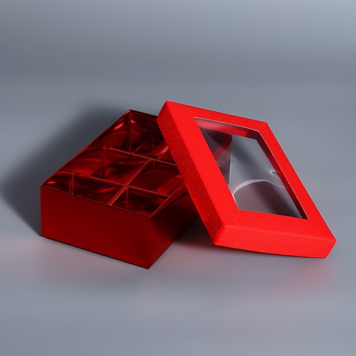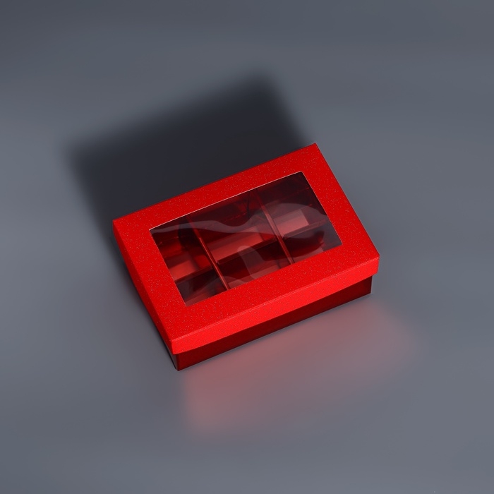 Коробка для 6 конфет красный глиттер, 12 х 8,5 х 4 см. Кондитерская упаковка