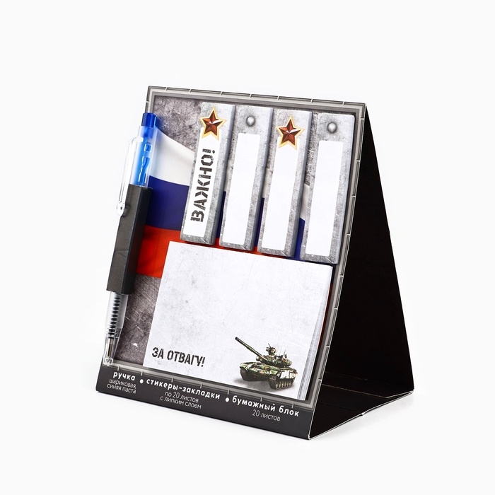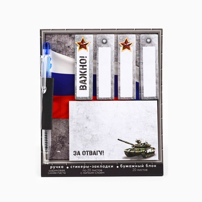 Стикеры 20 листов и мини ручка шариковая «За отвагу»