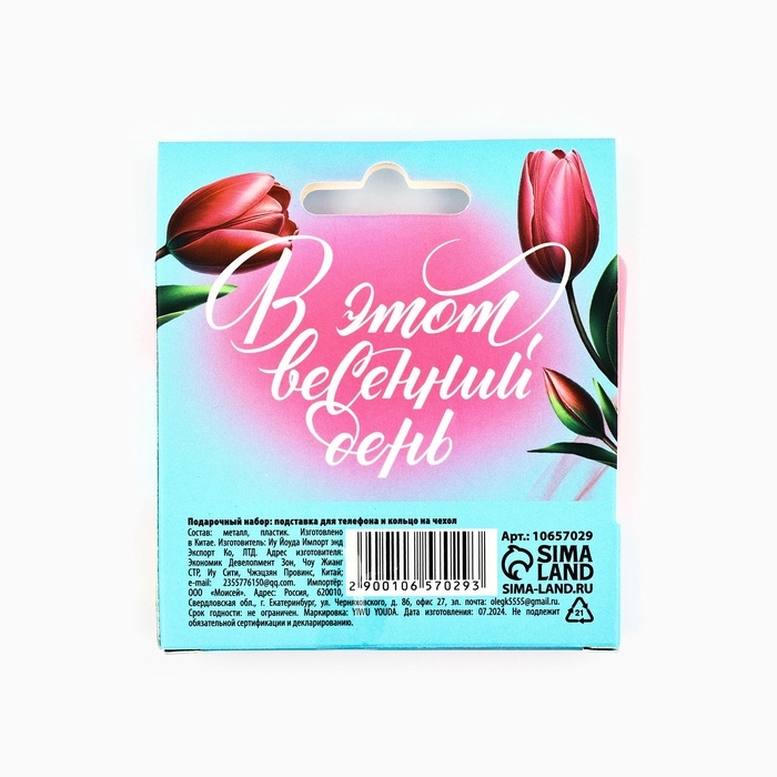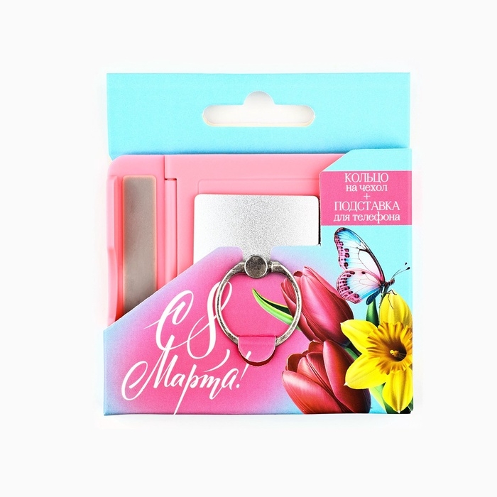 Набор: подставка для телефона и кольцо на чехол "С 8 марта"