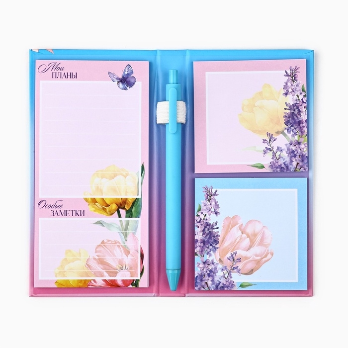 Блок бумаг для записей, стикеры, ручка "С 8 Марта. Букет"