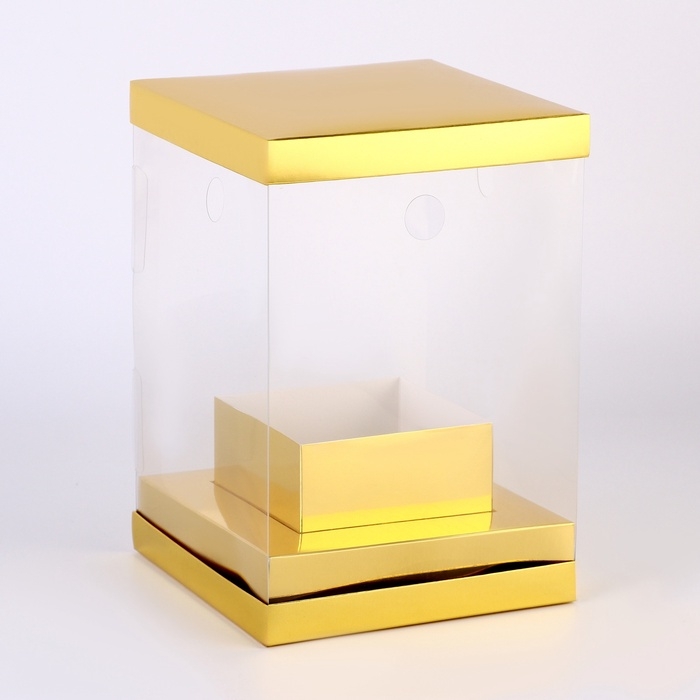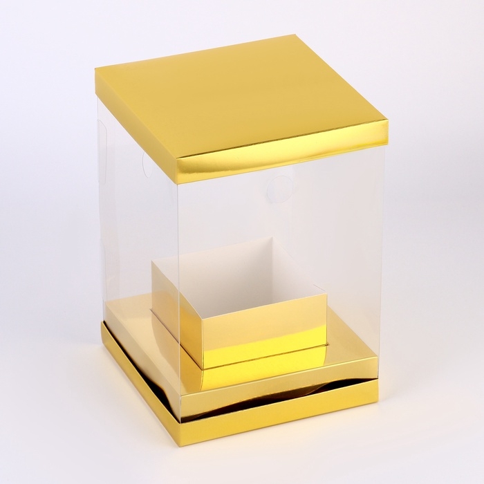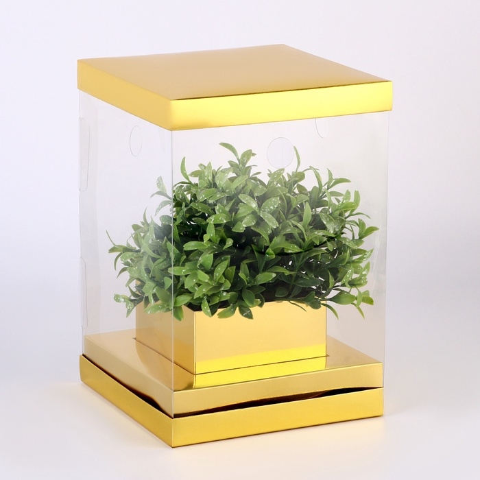 Коробка для цветов с вазой и PVC окнами складная, 16 х 23 х 16 см, золото