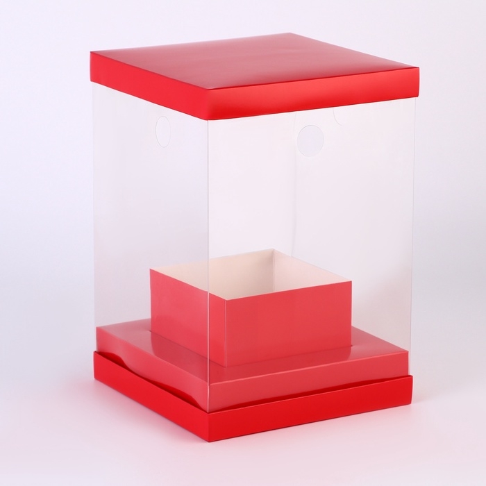 Коробка для цветов с вазой и PVC окнами складная, 16 х 23 х 16 см, однотонный, красный