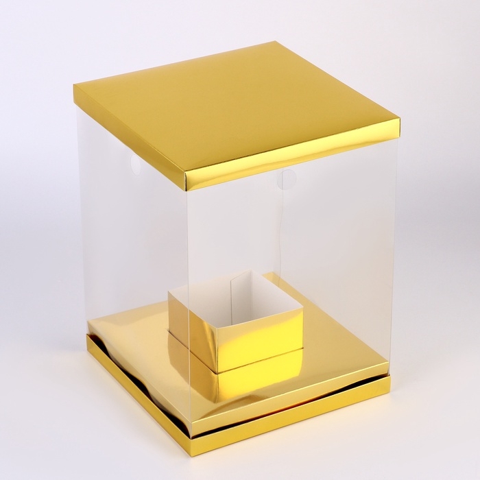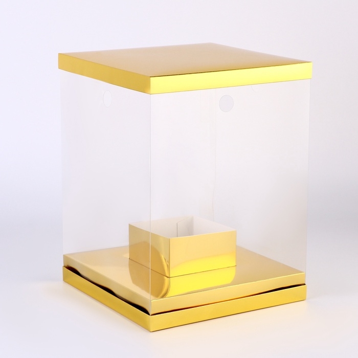 Коробка для цветов с вазой и PVC окнами складная, 23 х 30 х 23 см, золото