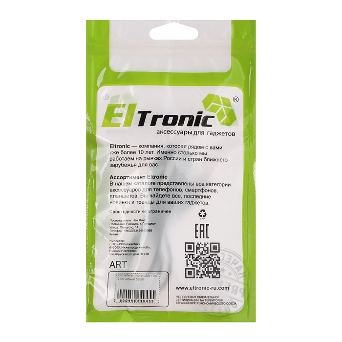 Кабель microUSB - USB, 2.4 А, 1 м, зарядка + передача данных, пакет, черный