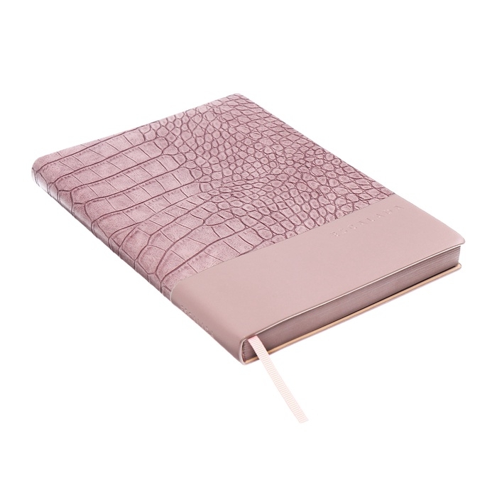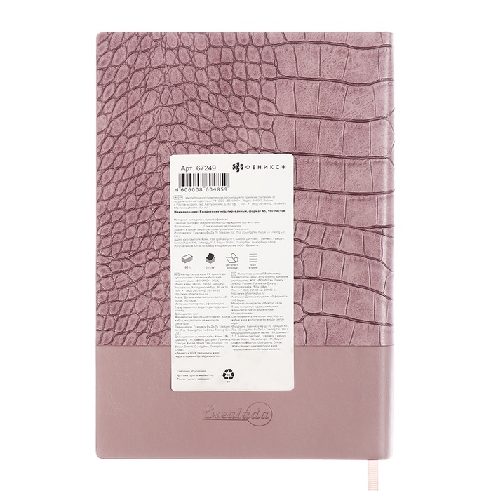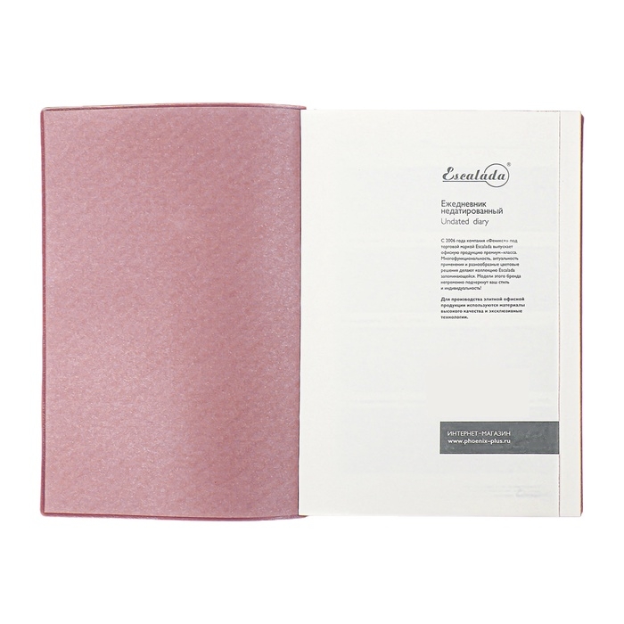 Ежедневник недатир А5 160л ESCALADA, мяг обл, иск кож, тис ф, ляс, кр бл 70г/м2, розовый