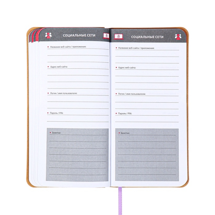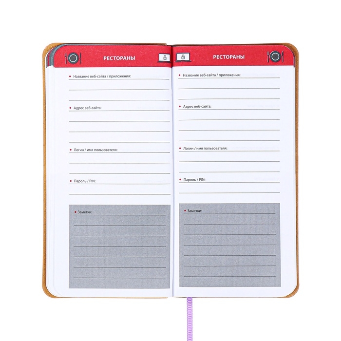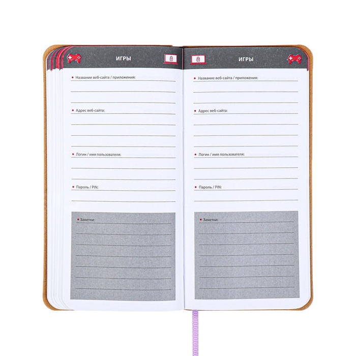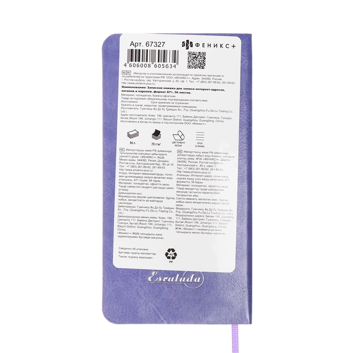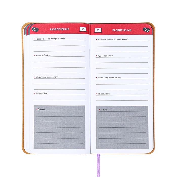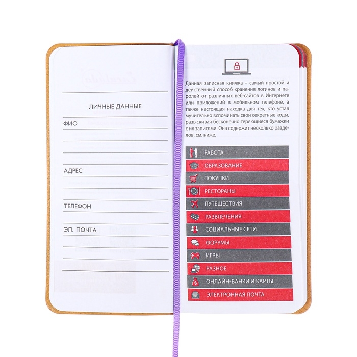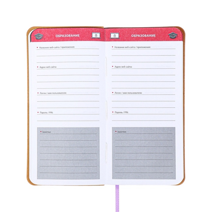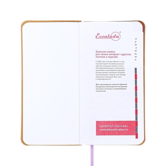 Книжка д/зап лог и парол А7+ 56л ESCALADA, мяг обл, иск кож, тис ф, ляс, бл 70г/м², сирен