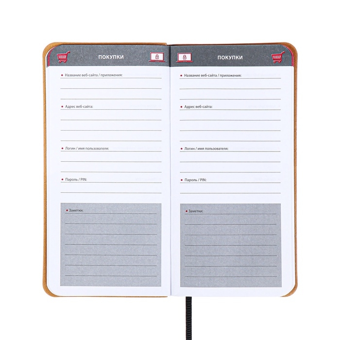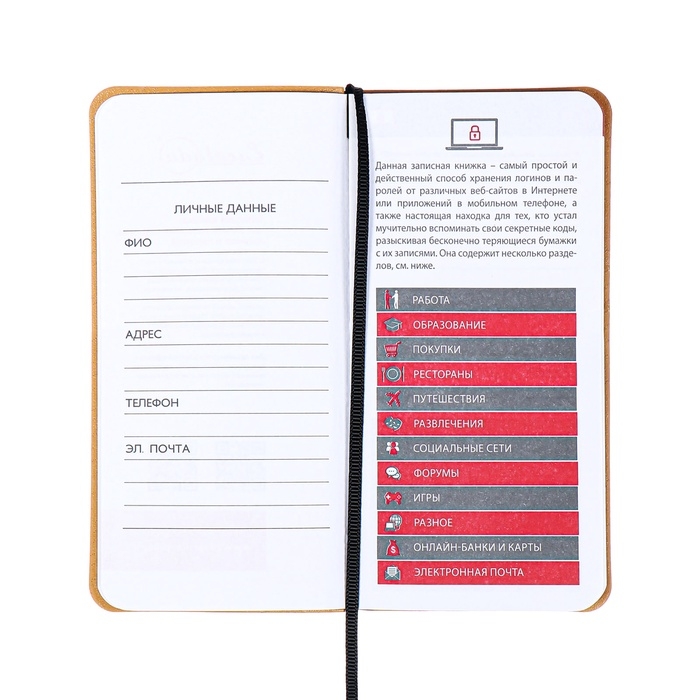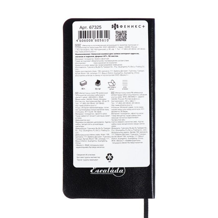 Книжка д/зап лог и парол А7+ 56л ESCALADA, мяг обл, иск кож, тис ф, ляс, бл 70г/м², чёрный