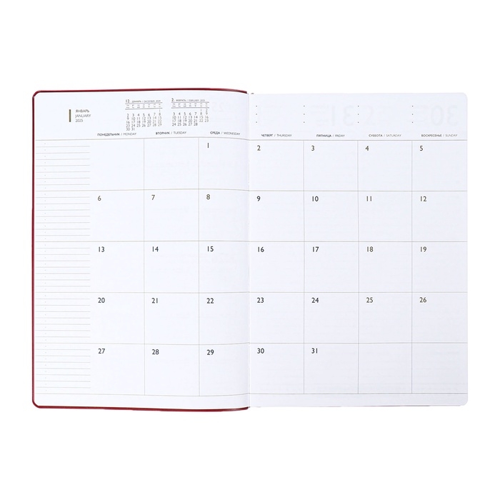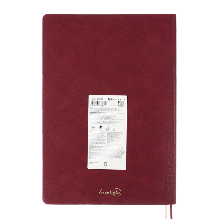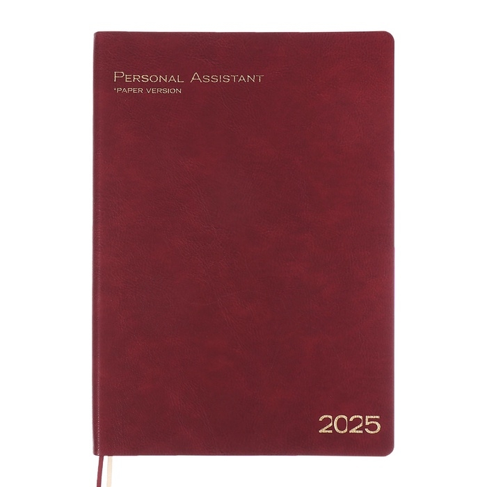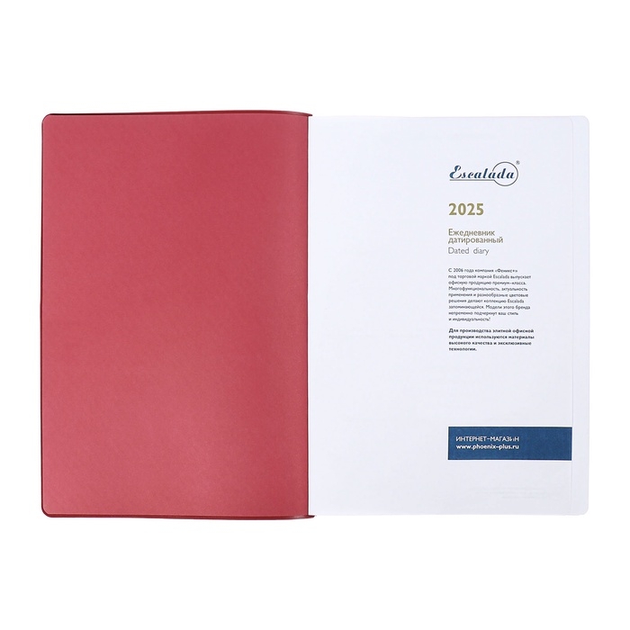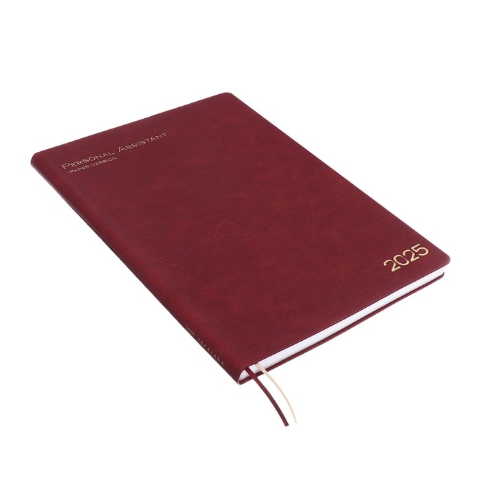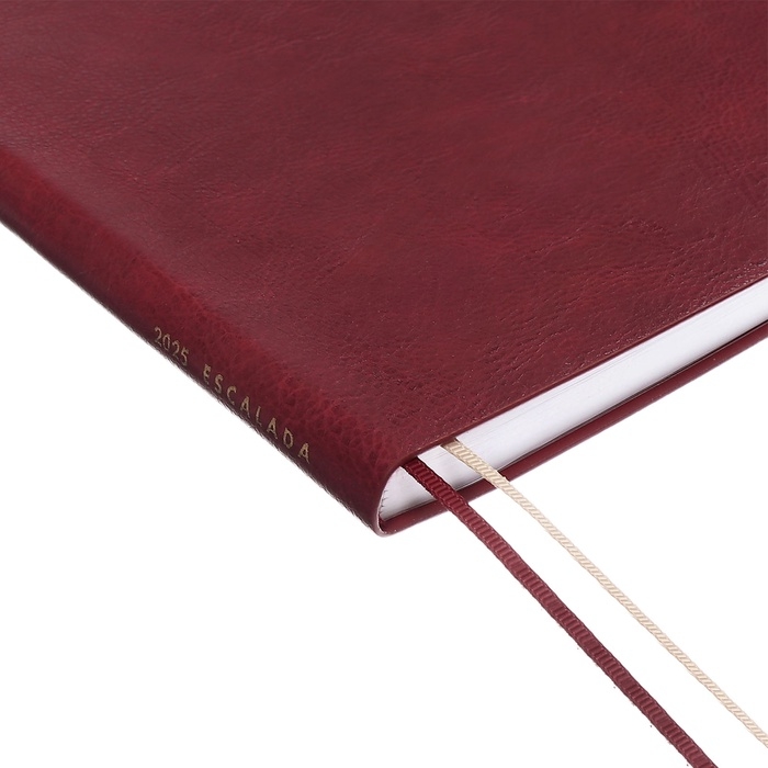 Ежедневник датир 2025г А4 120л ESCALADA, мяг обл, иск кожа, тисн ф, ляс, бл 80г/м2,бордовый