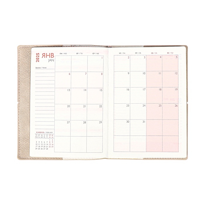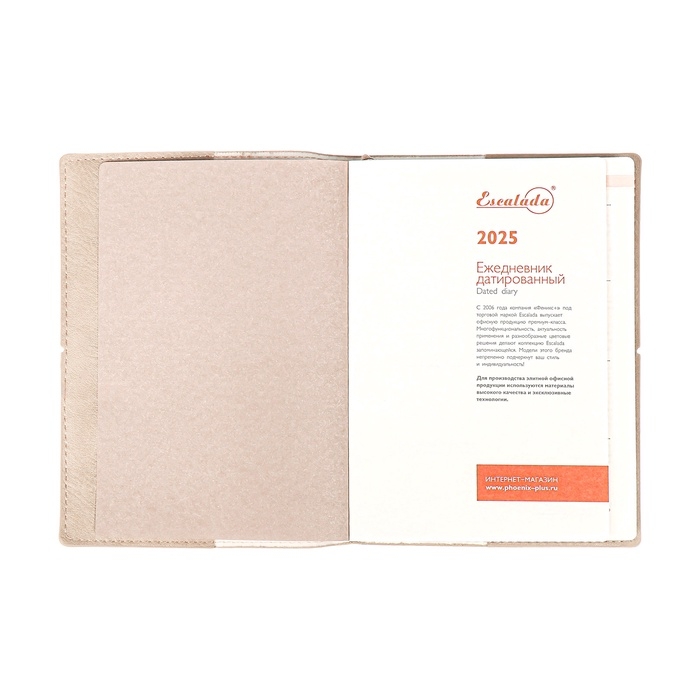 Ежедневник датир 2025г А6+ 176л ESCALADA, мяг обл, иск кожа, тис ф, кр бл 70г/м2, бежевый