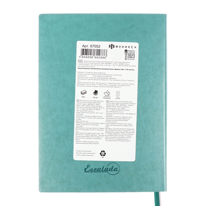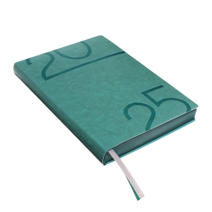 Ежедневник датир 2025г А6+ 176л ESCALADA, мяг обл, иск кожа, бл тис, тон бл 70г/м2, зелёный