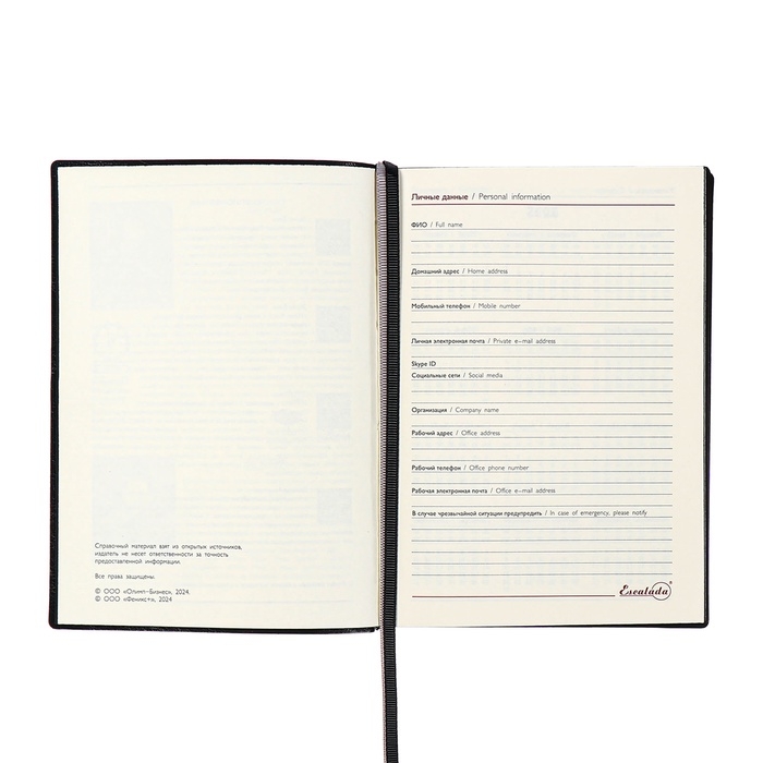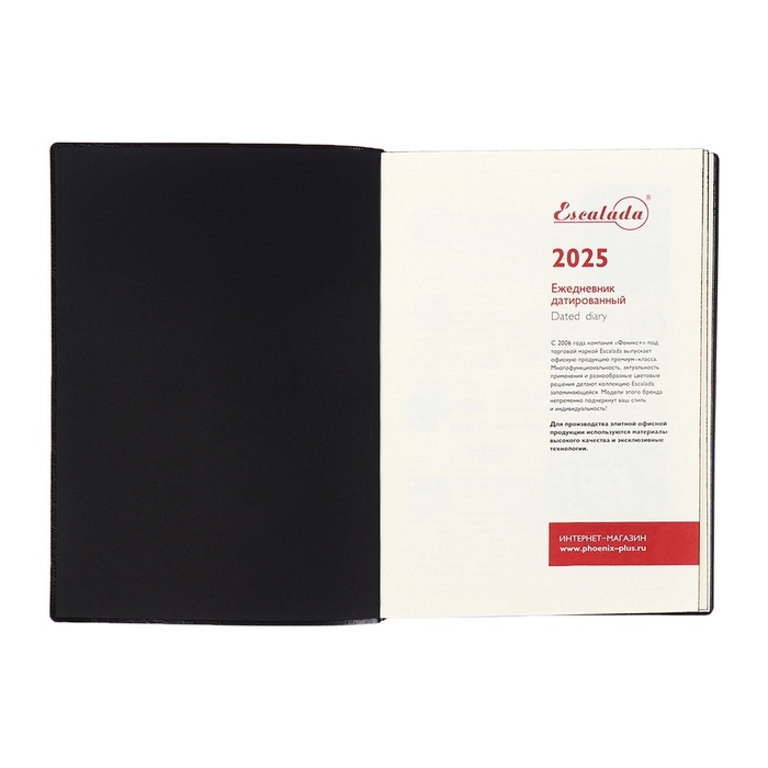 Ежедневник датир 2025г А6+ 176л ESCALADA, мяг обл, иск кожа, бл тис, тон бл 70г/м2, чёрный