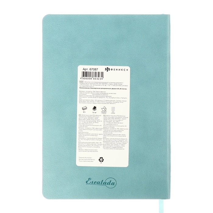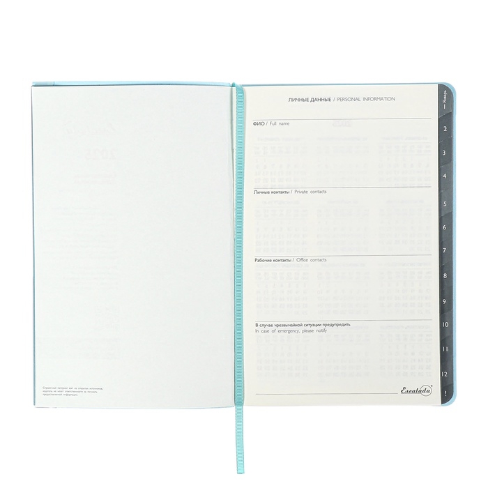 Еженедельник датир 2025г мягк обл иск кож А5 80л ESCALADA, бл тис, кр бл 70 г/м², синий