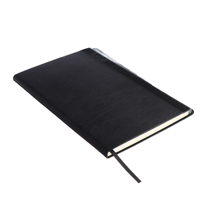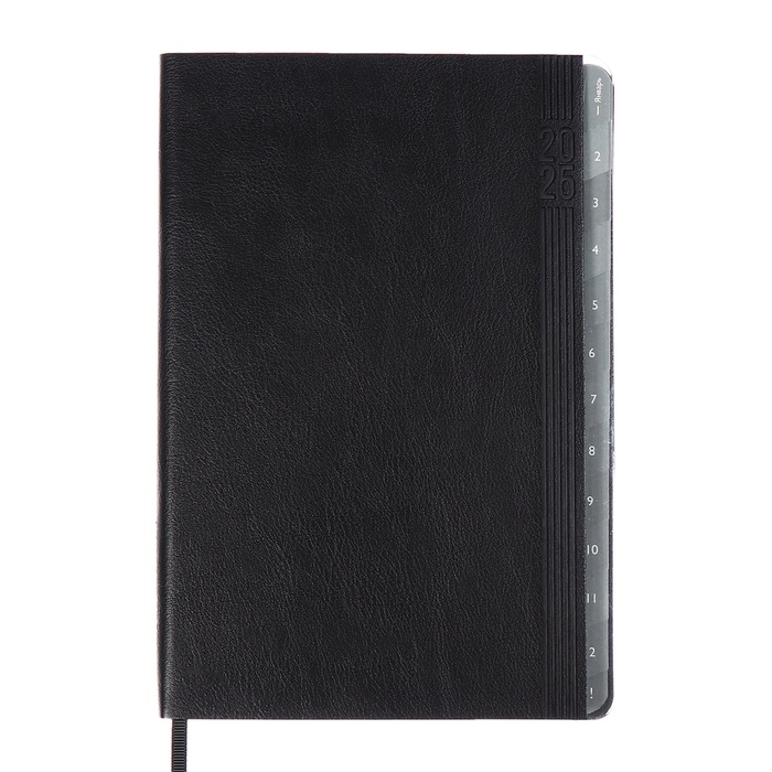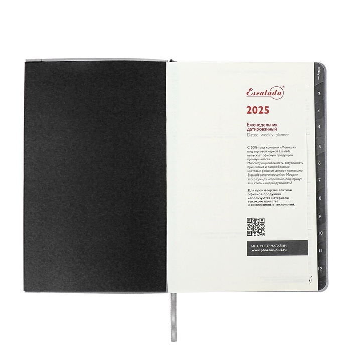 Еженедельник датир 2025г мягк обл иск кож А5 80л ESCALADA, бл тис, кр бл 70 г/м², чёрный