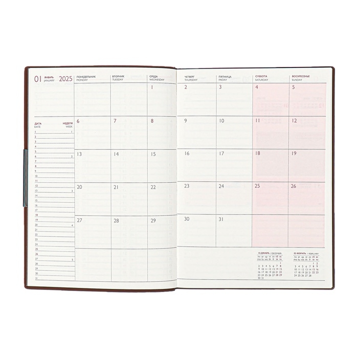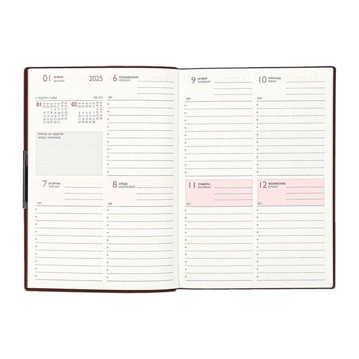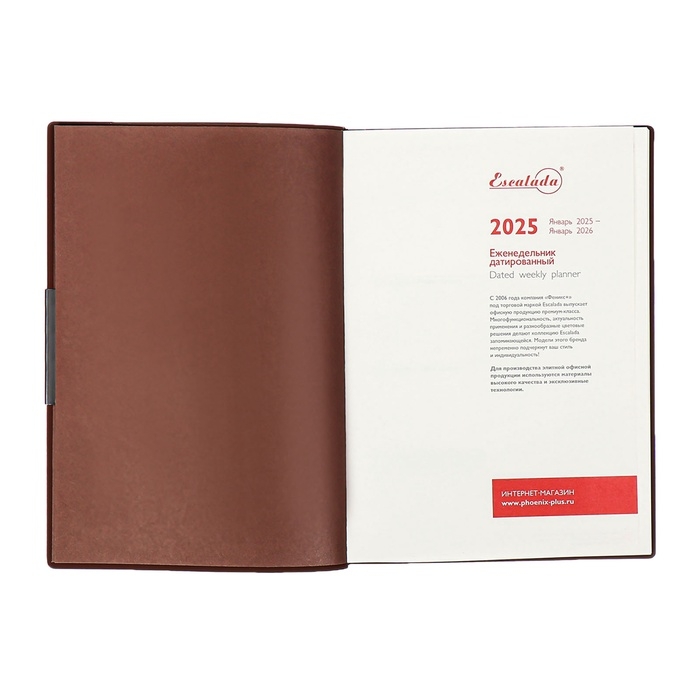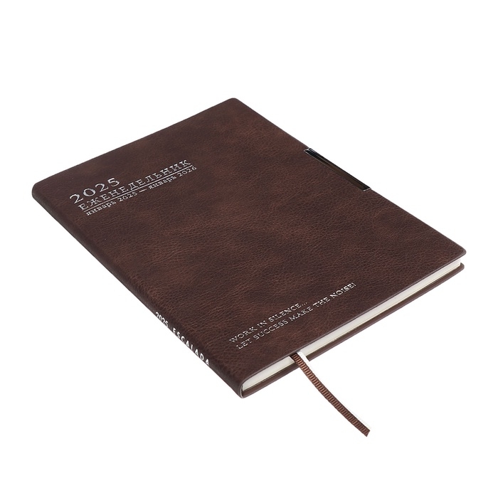 Еженедельник датир 2025г мягк обл иск кож А6+ 80л ESCALADA, тис ф, кр бл 70 г/м², кор-ый