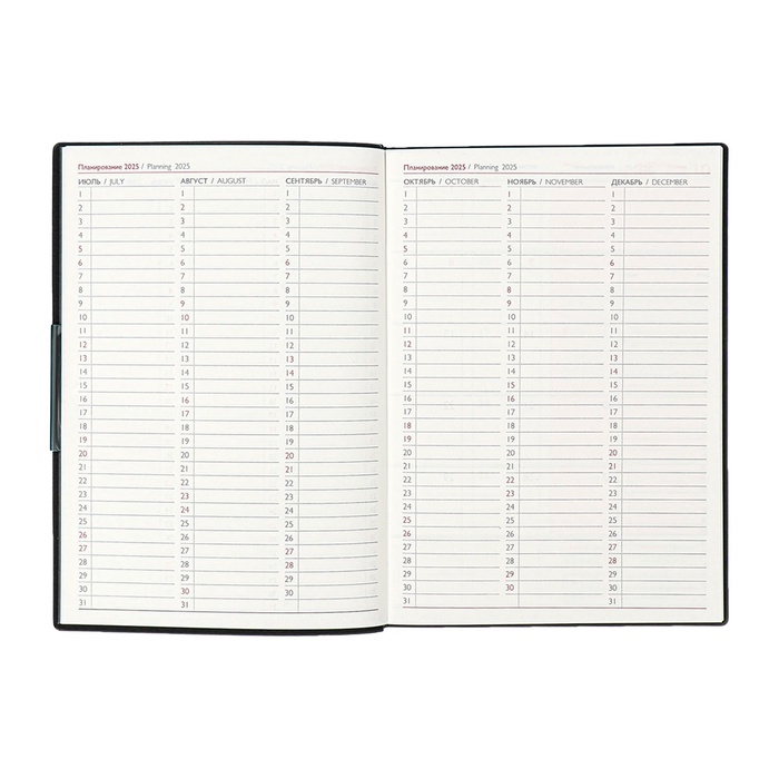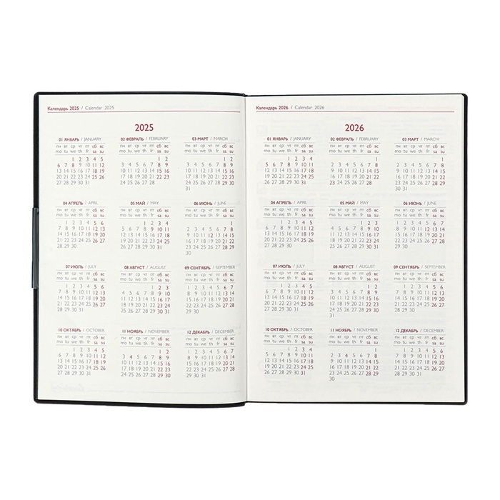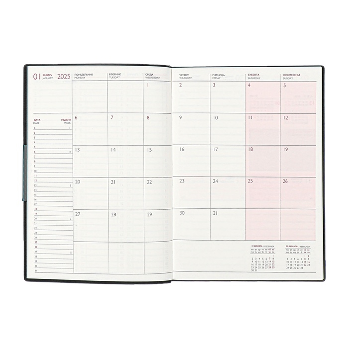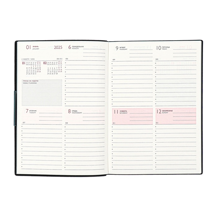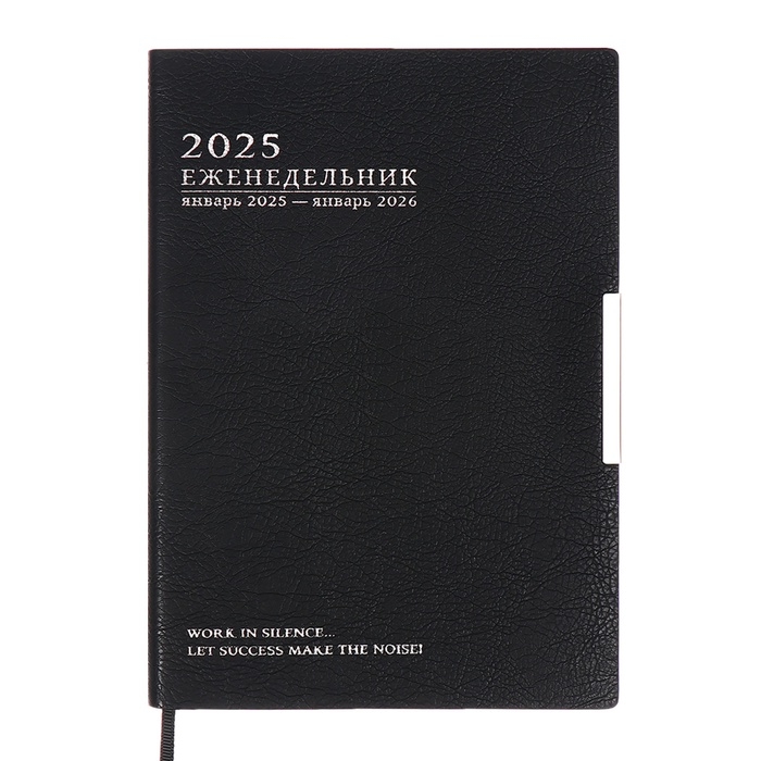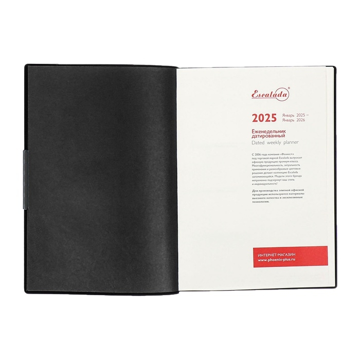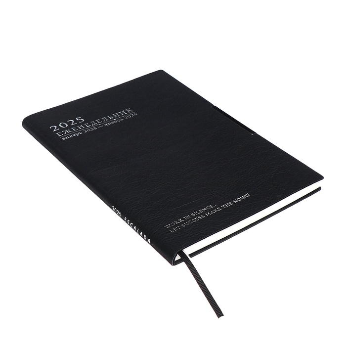 Еженедельник датир 2025г мягк обл иск кож А6+ 80л ESCALADA, тис ф, кр бл 70 г/м², чёрный