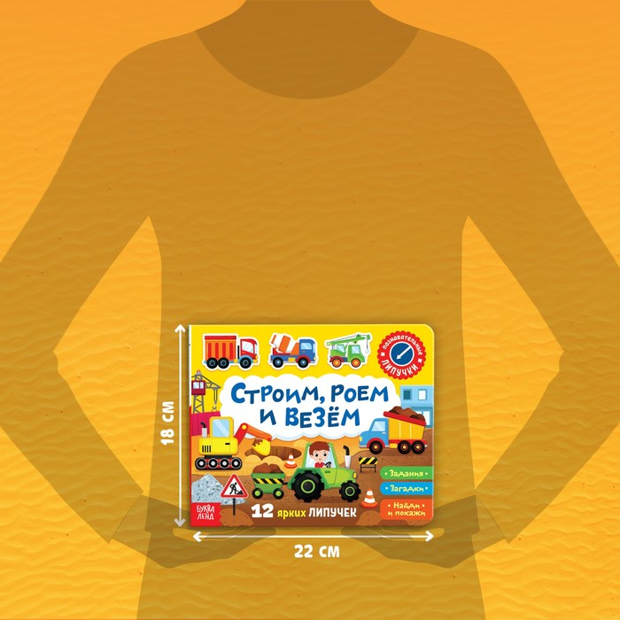 Книжка с липучками «Строим, роем и везём» 12 стр.