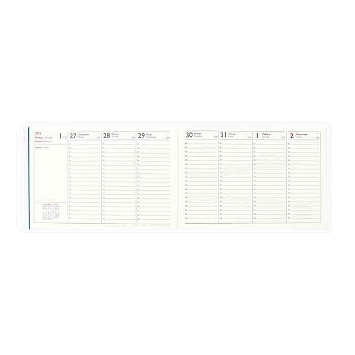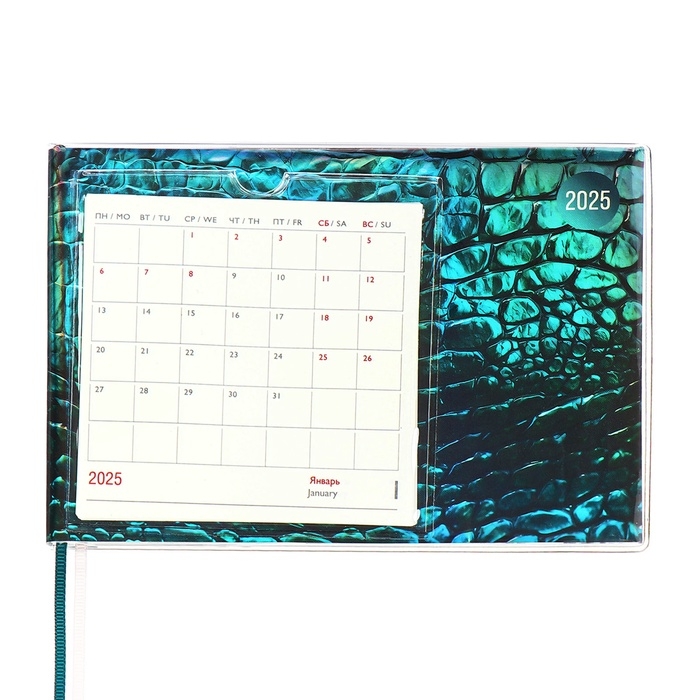 Еженедельник датир 2025г 180х127мм мягк обл ПВХ 64л ESCALADA ЗМЕЯ ЗЕЛЁНАЯ, кр бл 70 г/м²