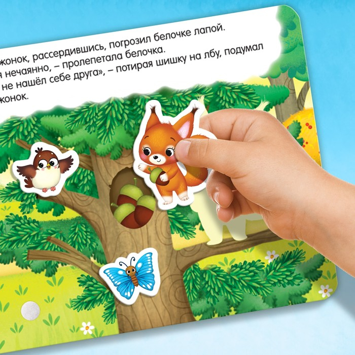 Обучающая книга с липучками направлена на расширение кругозора. Добрая сказка понравится ребёнку, ведь он сможет оживить историю, ведь героев на липучках можно перемещать со страницы на страницу.