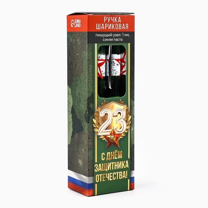 Ручка с колпачком "С Днём Защитника Отечества!", пластик, синяя паста, 1.0 мм