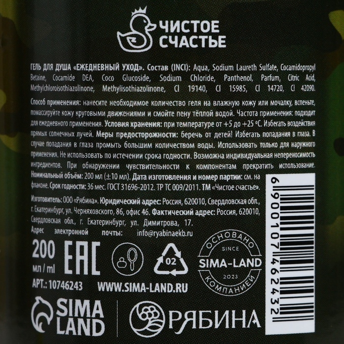 Гель для душа пуля ЧИСТОЕ СЧАСТЬЕ «С 23 Февраля», 200 мл, аромат пряного виски