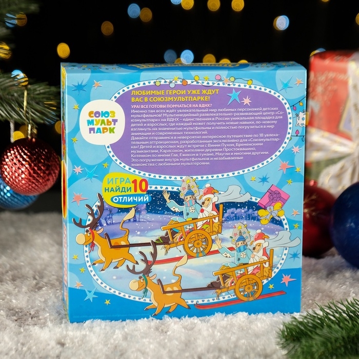 Коробка выполнена из качественных материалов, которые обеспечивают сохранность содержимого. Она имеет яркий и красочный дизайн, который отражает атмосферу Нового года.