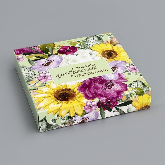 Коробка для 8 конфет + шоколад, с окном "Прекрасного настроения", 17,7 х 17,8 х 3,8 см. Кондитерская упаковка