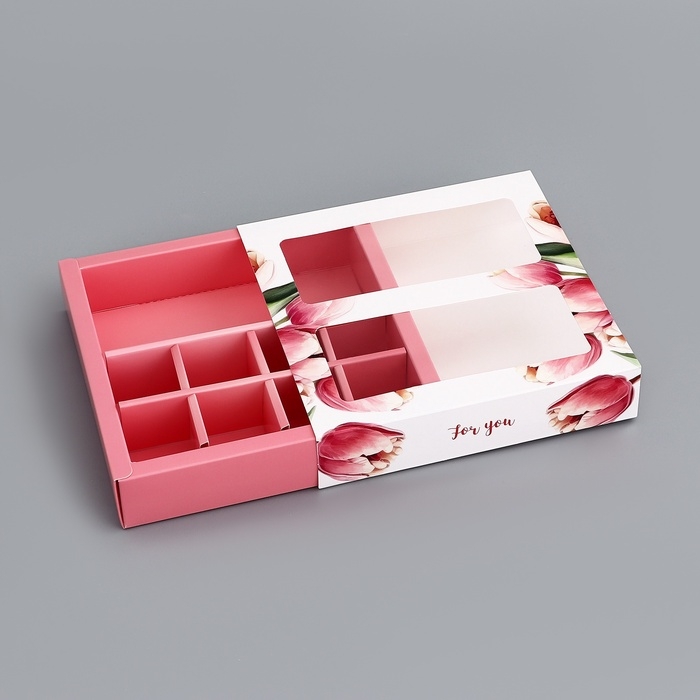 Коробка для 8 конфет + шоколад, с окном "Презент", 17,7 х 17,8 х 3,8 см. Кондитерская упаковка