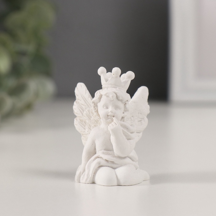 Сувенир полистоун "Ангелочек в короне" белый МИКС 3х3х5 см