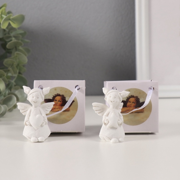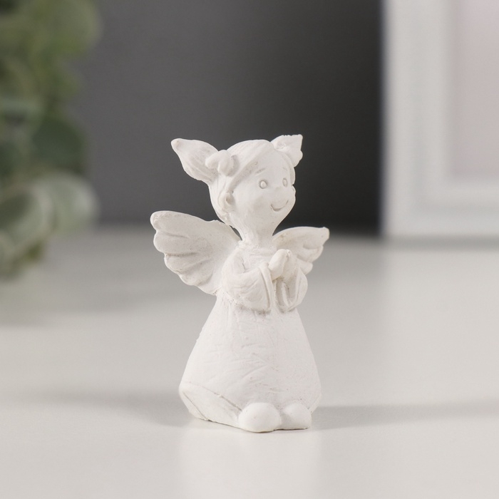 Сувенир полистоун "Девочка ангел с двуми хвостиками" белый МИКС 3,5х3х5,5 см