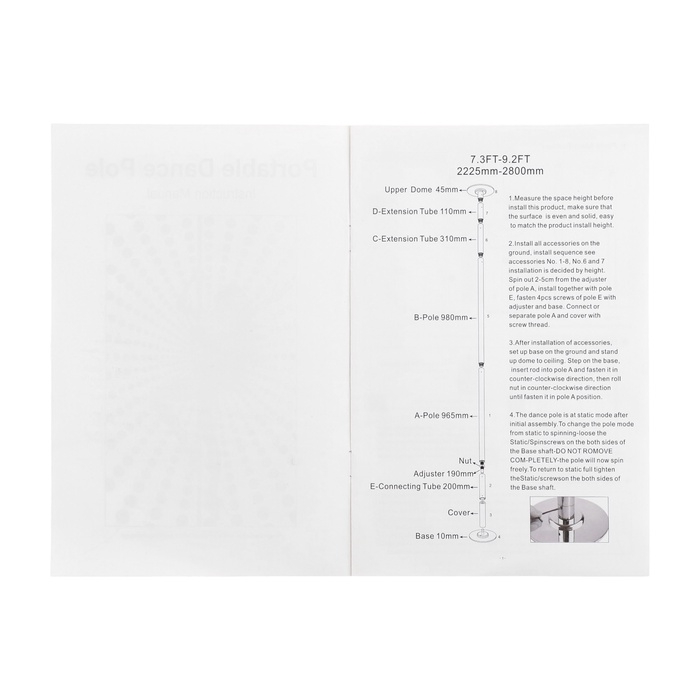 Пилон для танцев, портативный шест, 3.8 м, d-4.5 см