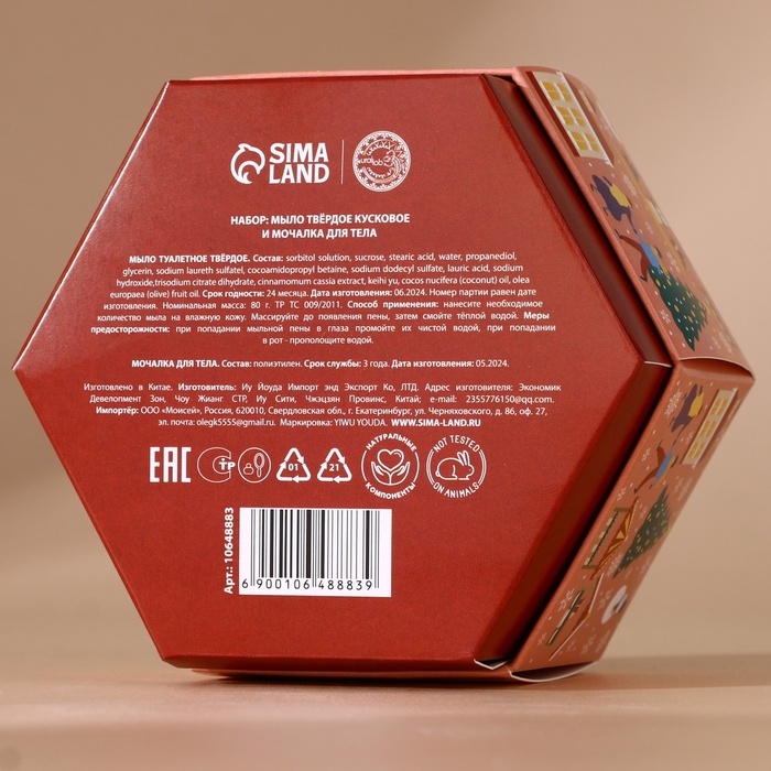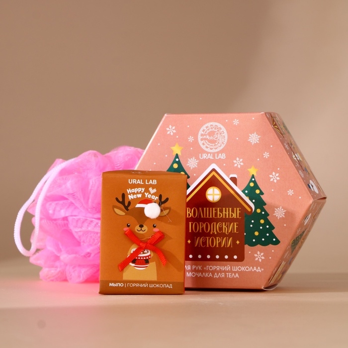 Подарочный набор URAL LAB «Волшебные истории», мыло для рук кусковое 100 г и мочалка для тела, Новый Год
