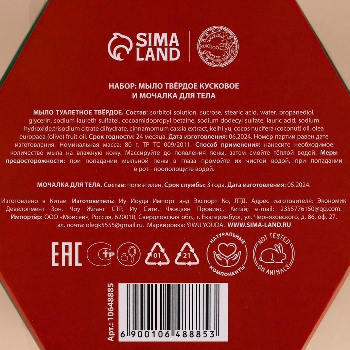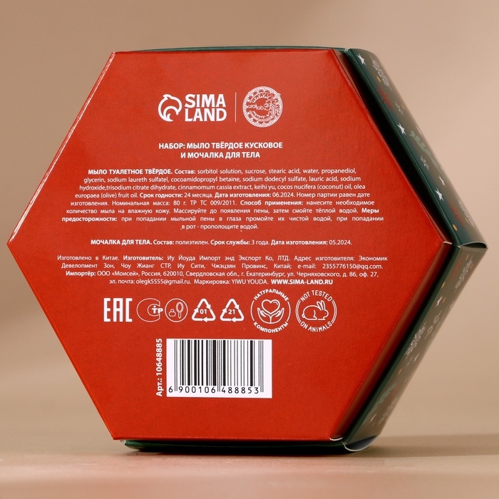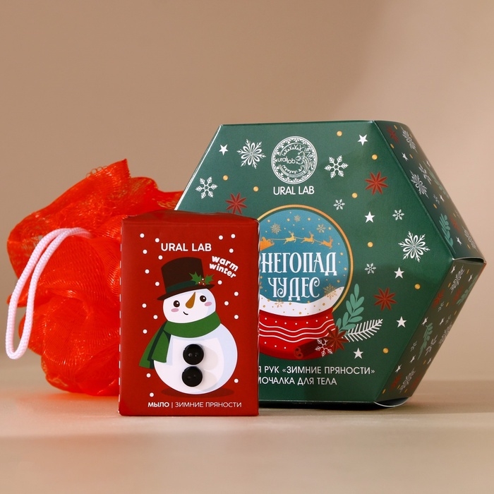 Подарочный набор URAL LAB «Снегопад чудес», мыло для рук кусковое 100 г и мочалка для тела, Новый Год