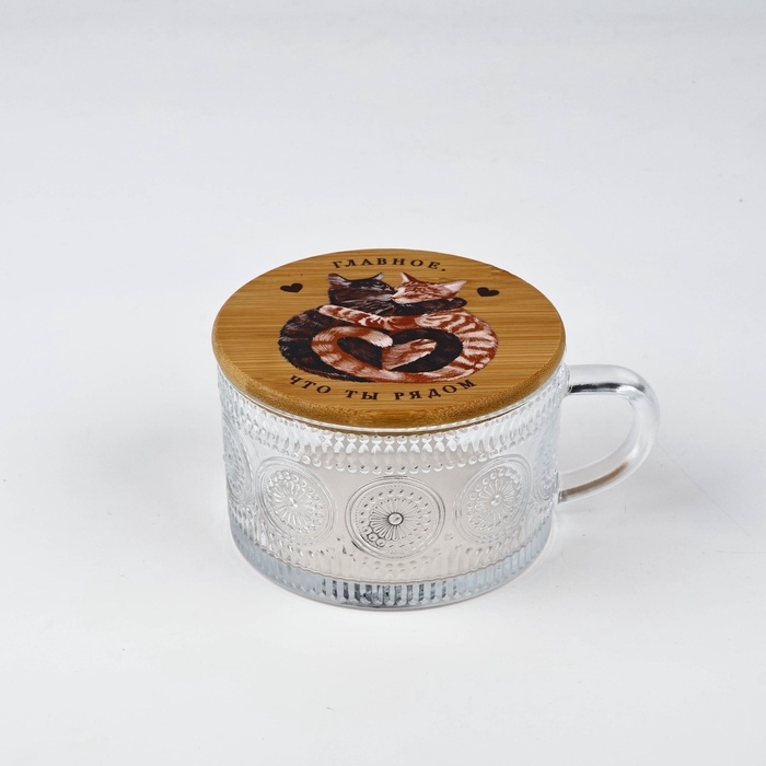 Кружка с крышкой стеклянная Дорого внимание «Ты рядом», 450 мл