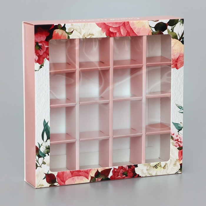 Коробка для конфет 16 шт "Презент", 17,7 х 17,7 х 3,8 см. Кондитерская упаковка