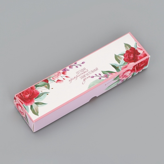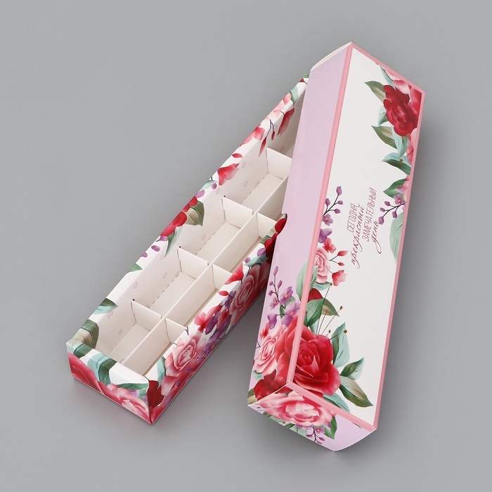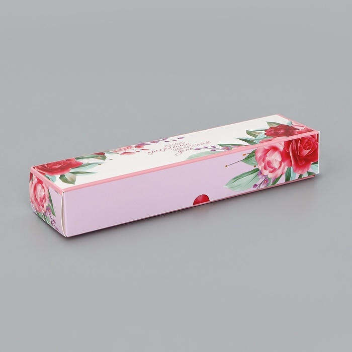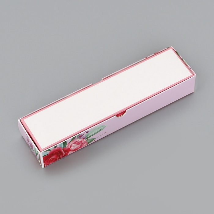 Коробка для 5 конфет с обечайкой, с окном "Цветочки", 21 х 5 х 3,3 см. Кондитерская упаковка