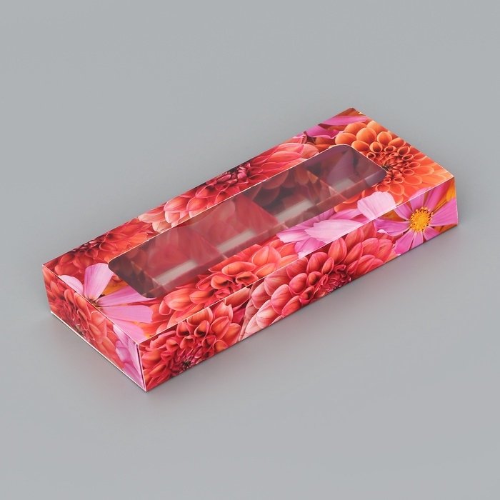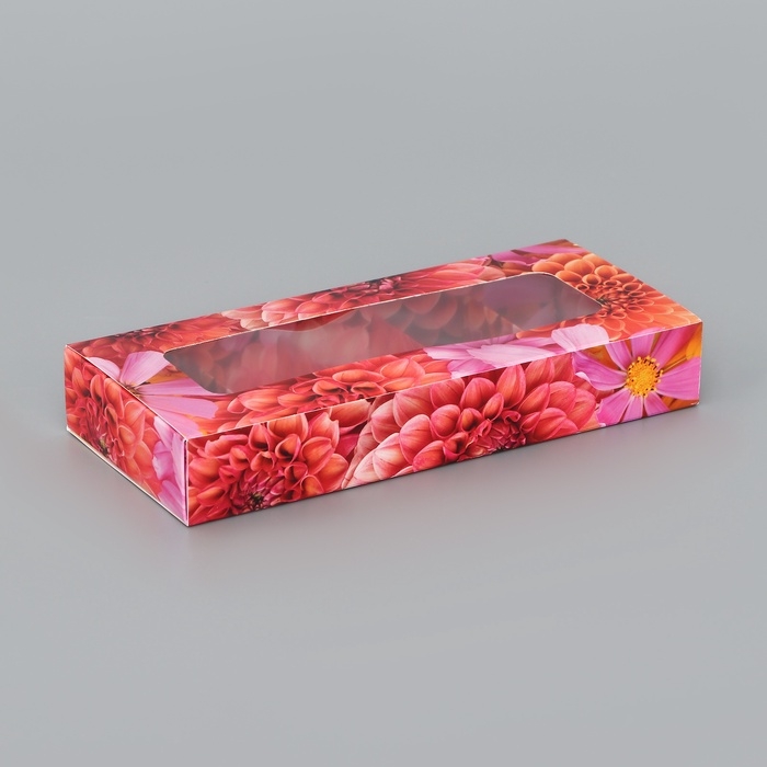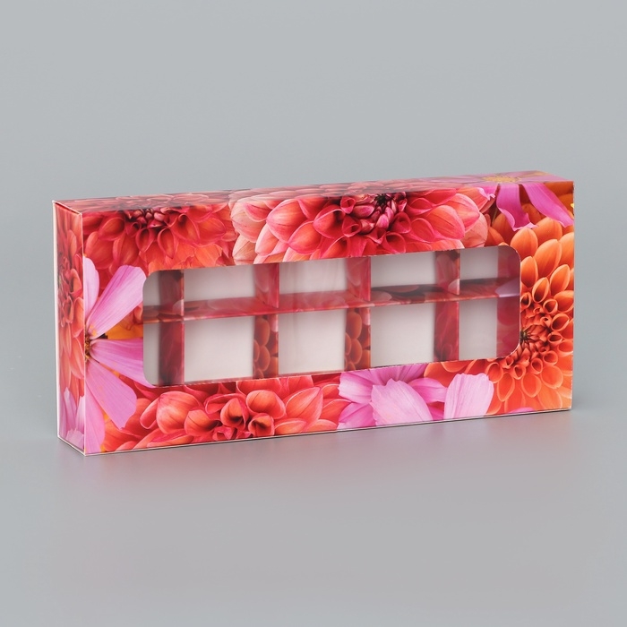 Коробка складная для 10 конфет "Цветочки", 9,8 х 22 х 3,5 см. Кондитерская упаковка