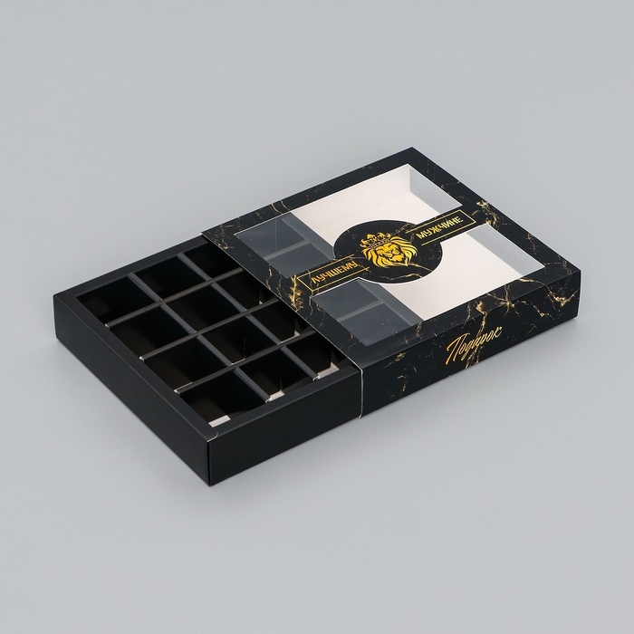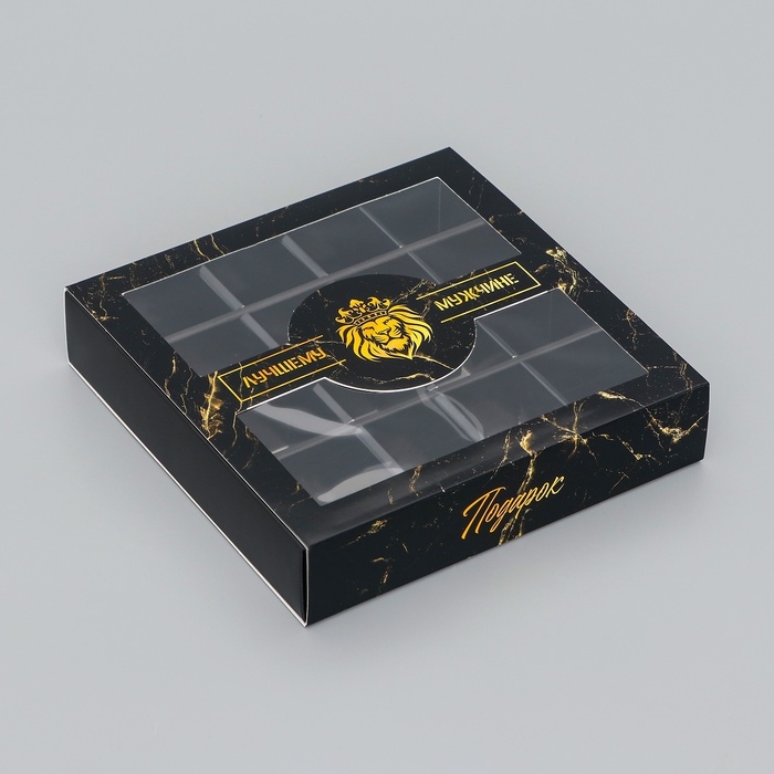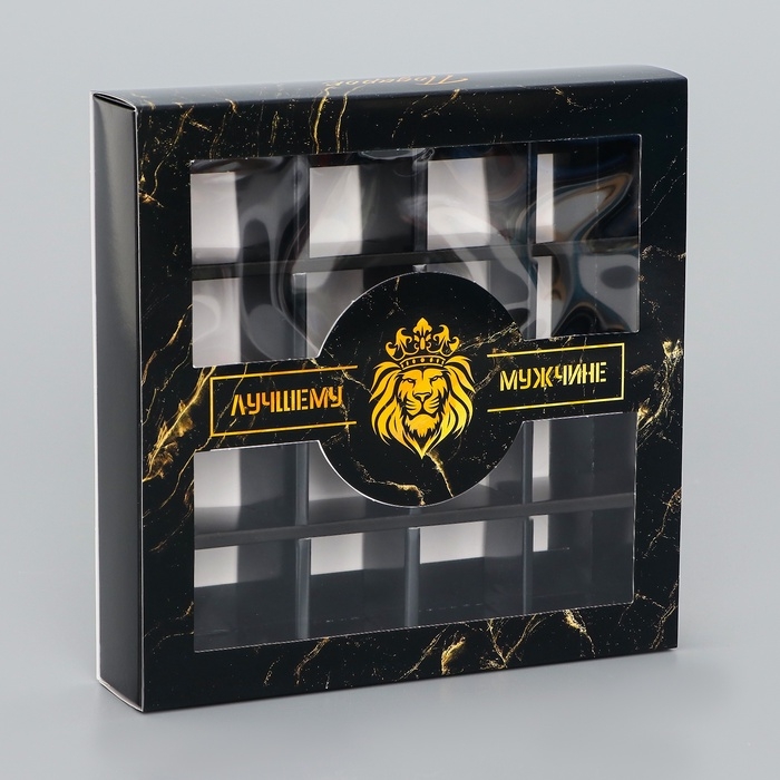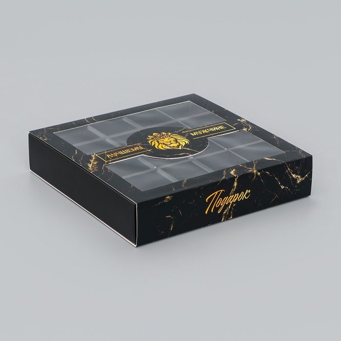 Коробка для конфет 16 шт "Подарок настоящему мужчине", 17,7 х 17,7 х 3,8 см. Кондитерская упаковка