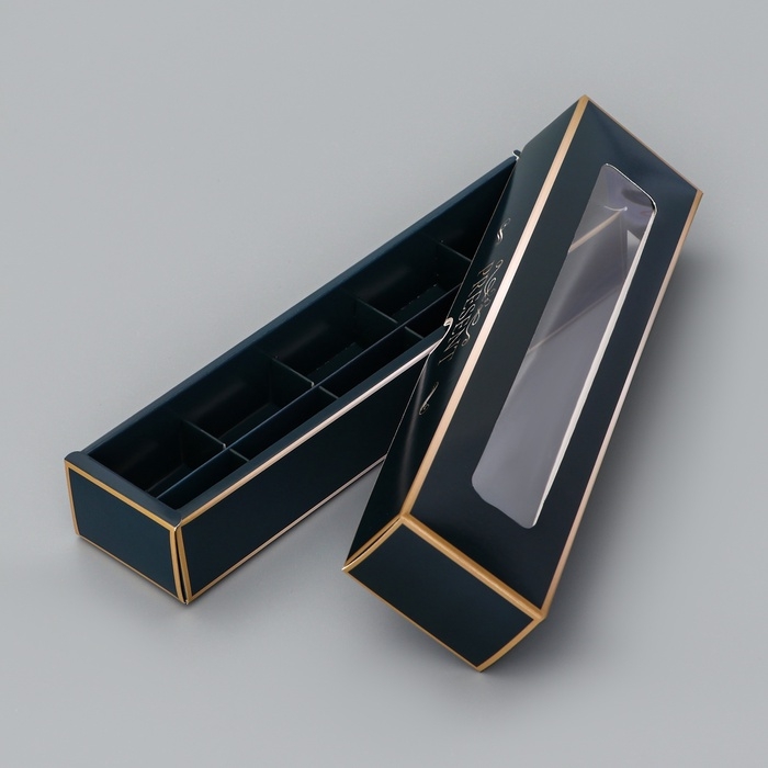 Коробка для 5 конфет с обечайкой, с окном "Мужской дляарок", 21 х 5 х 3,3 см. Кондитерская упаковка