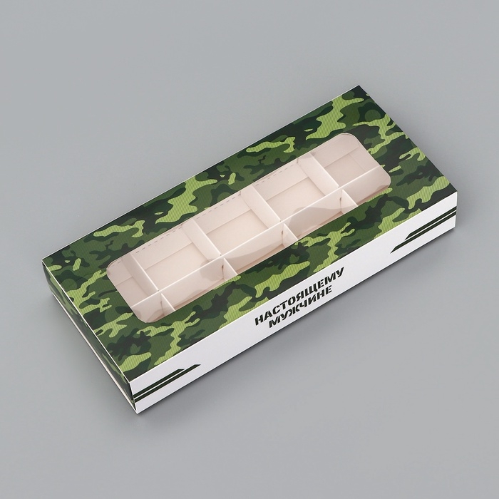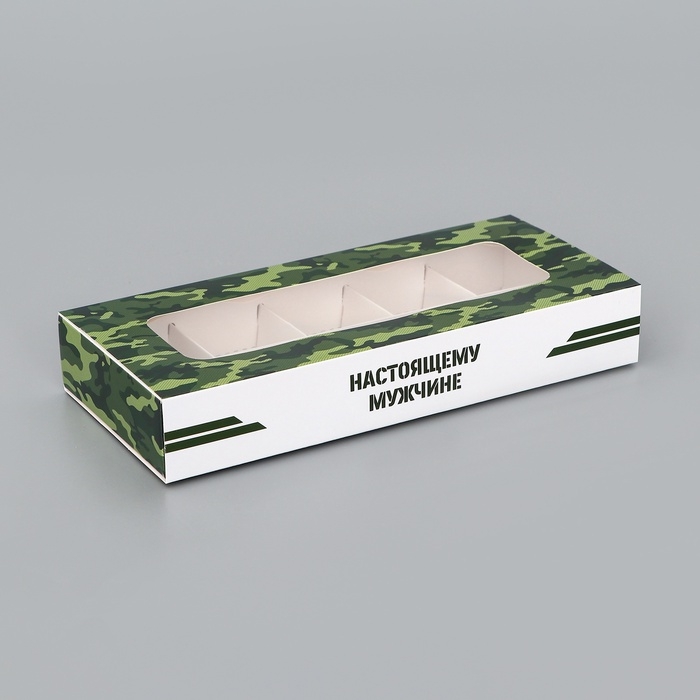 Коробка складная для 10 конфет "23 Февраля", 9,8 х 22 х 3,5 см. Кондитерская упаковка