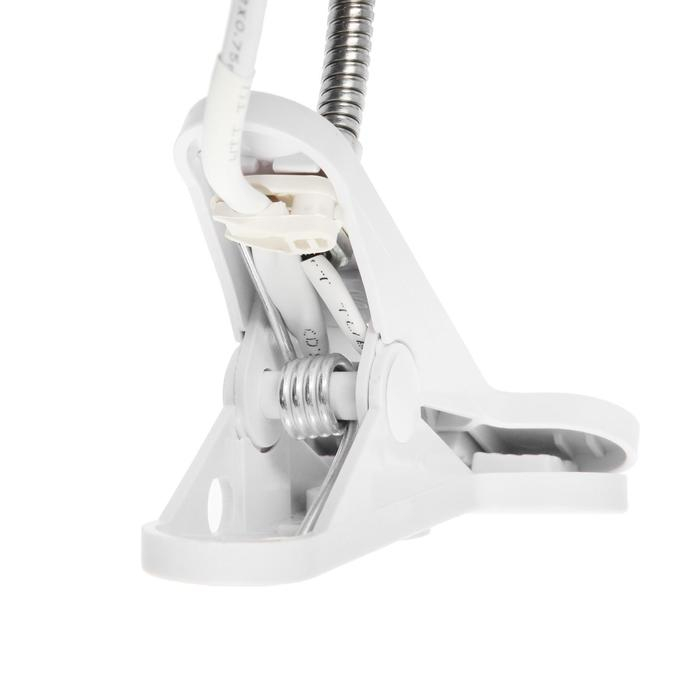 Светильник на прищепке под лампу используется в офисных, производственных и жилых помещениях для освещения рабочего стола, токарного станка и растений. Компактное и лёгкое изделие не занимает много пространства. Это позволяет без труда зафиксировать устройство на поверхности с помощью прищепки. Управляйте светом одной кнопкой, благодаря наличию выключателя на проводе. Выбирайте угол и направление свечения с помощью гибкой ножки.
